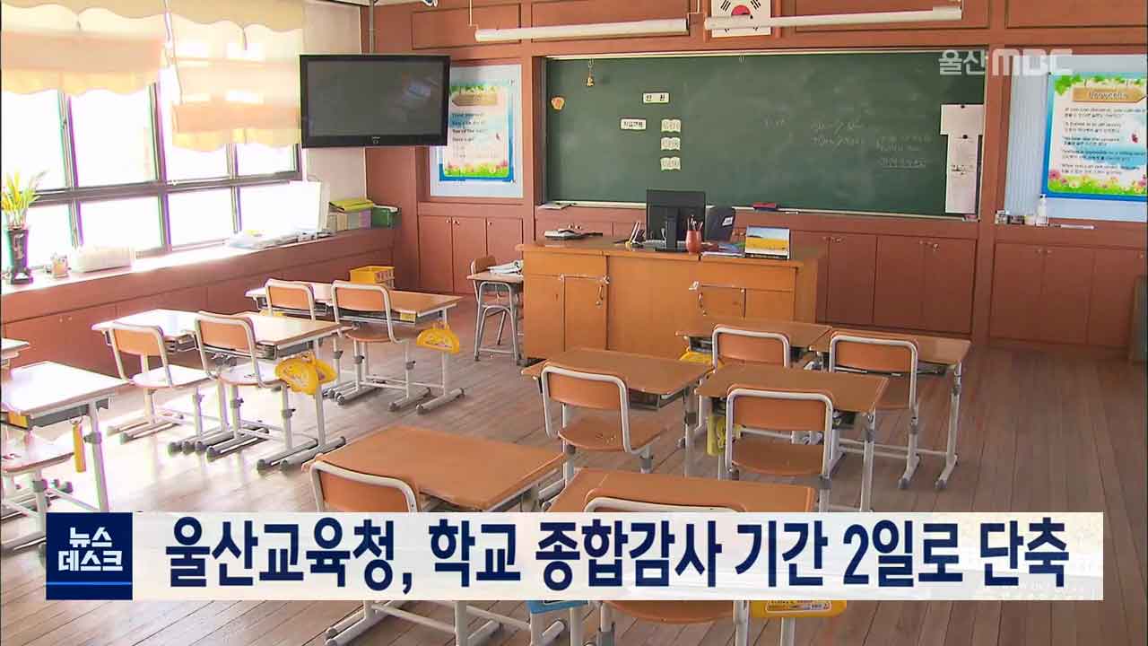 울산교육청은 코로나19 상황을 감안해 학교 종합감사 기간을 기존 3일에서 2일로 줄이기로 했습니다. 울산교육청은 지난 5월 이후 코로나19 예방과 등교수업 지원을 위해 중단했던 유치원과 초·중·고교 종합감사를 다음달부터 재개합니다. 올해 종합감사가 연기된 곳은 모두 22곳으로 유치원 7곳과 초등학교 10곳, 사립고등...