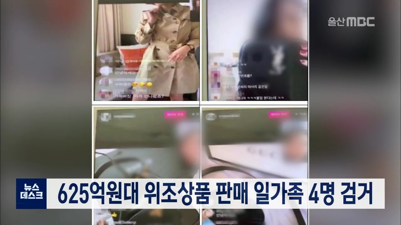 특허청 산업재산 특별사법경찰은 625억원대의 위조상품을 홍보하고 판매한 34살 A씨와 A씨의 두 자매, 남편 등 일가족 4명을 붙잡아 검찰에 송치했습니다. 이들은 2018년 6월부터 지난해 11월까지 울산의 가정집에 비밀작업장을 차려놓고 가방 등 해외명품 위조상품 2만6천여점을 SNS 채널로 판매한 혐의를 받고 있습니다. ...