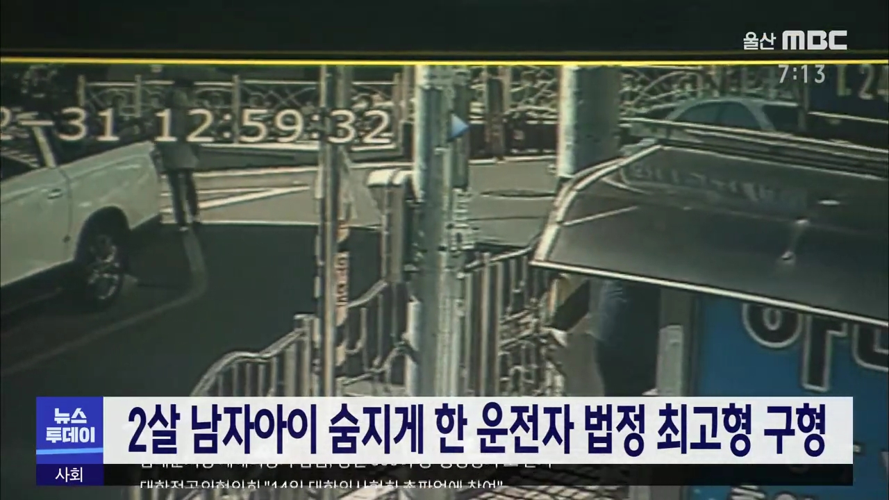 러시아 국적의 2살 남자아이를 SUV차량으로 치어 숨지게 한 운전자에게 법정 최고형이 구형됐습니다. 울산지검은 지난해 12월 울주군의 한 도로에서 SUV차량을 몰다 외국인 가족을 덮쳐 유모차에 타고 있던 2살 러시아 남자아이를 그 자리에서 숨지게 한 혐의로 기소된 운전사 A씨에게 법정 최고형인 금고 5년을 구형했습니...