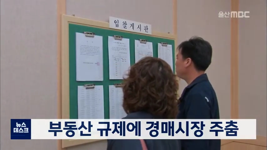 정부의 잇단 부동산 규제 정책 여파로 울산 경매시장이 주춤거리고 있습니다. 법원경매 전문기업 지지옥션이 따르면 지난달 울산의 경매 낙찰가율은 56.2%로 지난 6월 73%에 비해 크게 하락했습니다. 응찰자 수도 3.8명으로 지난해 5월 이후 14개월만에 4명 아래로 떨어졌습니다. 특히 업무상업시설의 경우 낙찰률은 20.8%...