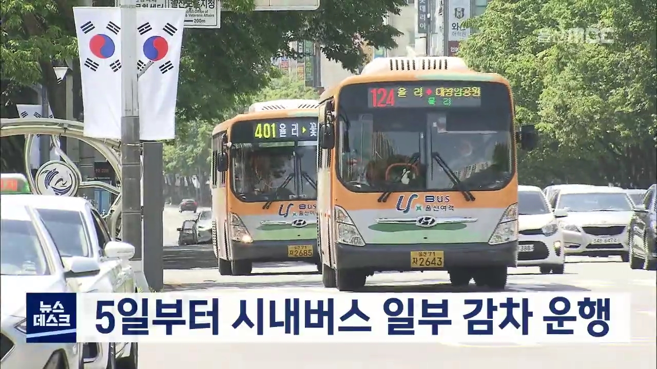 여름 방학과 휴가철을 맞아 시내버스 일부 노선이 감차 운행됩니다. 울산시는 오는 5일부터 28일까지 전체 시내버스 중 10% 가량인 63개 노선 95대를 줄여 운행한다고 밝혔습니다. 감차 기간과 감차 노선은 코로나19로 인한 수요 감소와 방학기간 변경 등을 감안해 정해졌으며 이후 이용객이 증가하는 노선은 감차를 취소하...