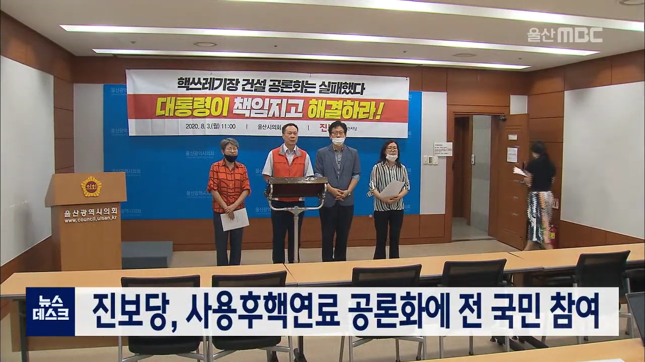 진보당 울산시당은 사용후핵연료 공론화에 모든 국민이 함께 참여하고 소통해야한다고 주장했습니다. 진보당 울산시당은 오늘(8/3) 울산시의회 프레스센터에서 기자회견을 열고 사용후핵연료 관리정책은 국민 생명과 안전이 걸린 주요 정책이고 국가 에너지 문제를 결정하는 문제라며 대통령이 책임지고 제대로 된 공론화를...
