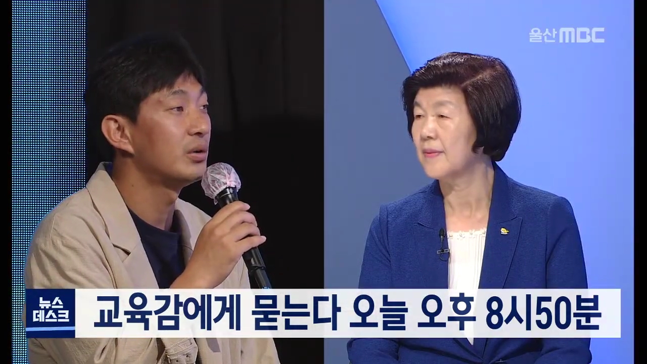 울산MBC가 마련한 울산시민 100개의 질문, 교육감에게 묻는다가 잠시 뒤 8시50분부터 방송됩니다. 노옥희 교육감은 코로나19에 대한 교육청의 대응과 민주적 학사운영, 성인지 감수성 교육, 송정지구 초등학교 신설 등에 대해 답합니다. 방송에 나오지 못한 질문은 서면으로 답변을 받아 빠른 시일내에 울산MBC 홈페이지에 ...
