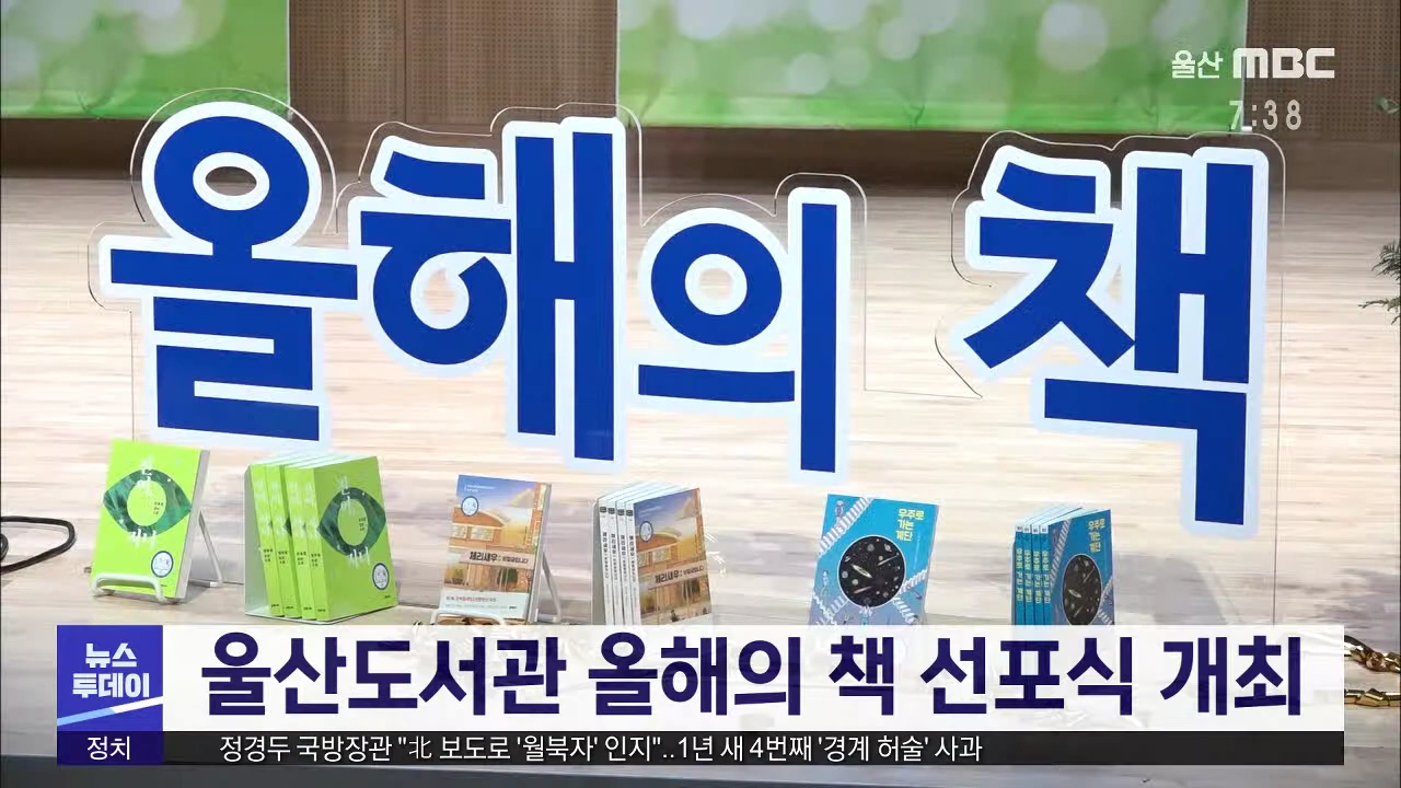 '2020년 책 읽는 울산, 올해의 책 선포식'이 오늘(7/28) 울산도서관에서 열렸습니다.울산도서관과 지역 19개 공공도서관은 시민들이 '올해의 책'을 같이 읽고 토론하는독서 생활화 사업을 펼칩니다.울산도서관은 지난 5월 시민 선호도 조사 등을 거쳐 정유정 작가의 '진이, 지니' 등 3권을 올해의 책으로 선정했습니다.//