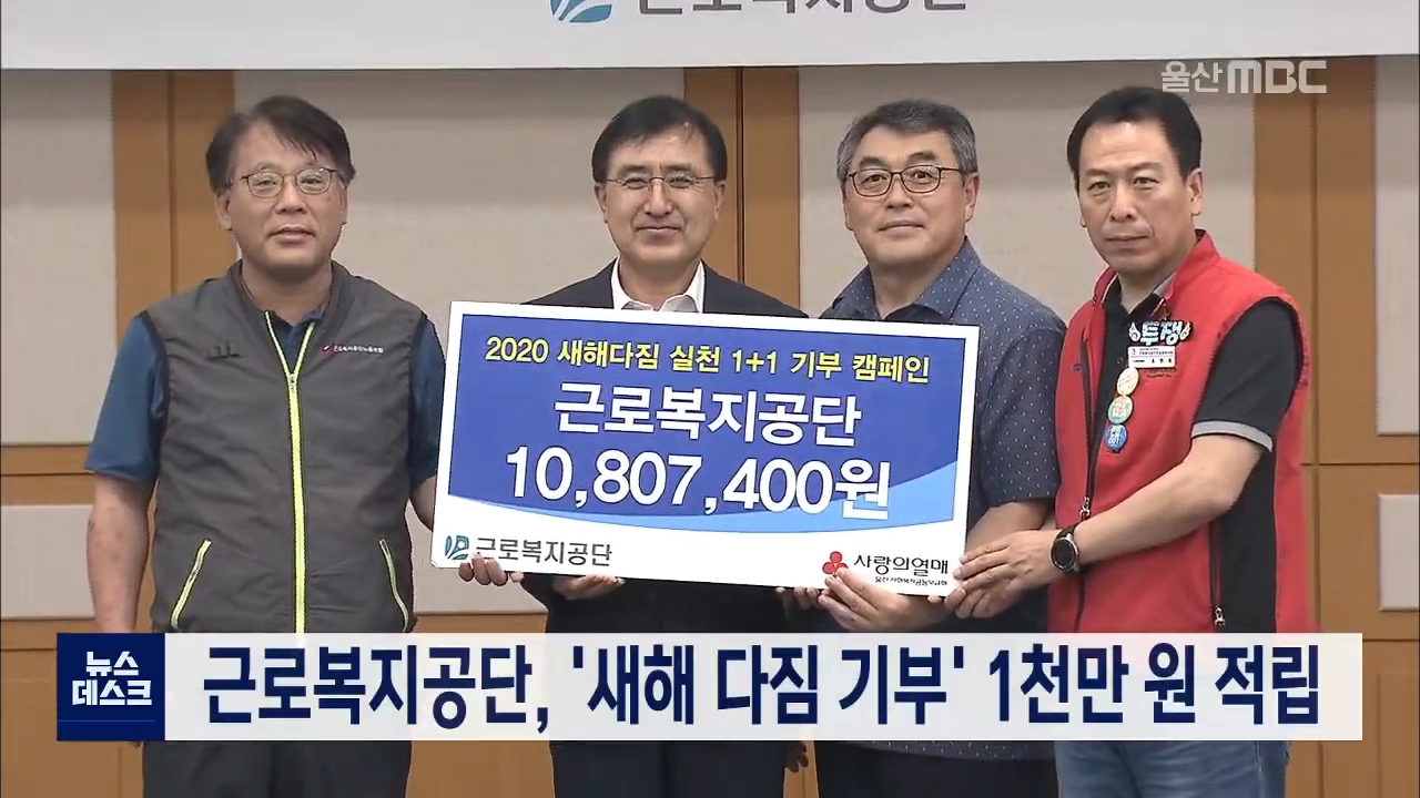 근로복지공단 전체 임직원 600여 명은 오늘(7/21) 새해다짐을 실천한 일수만큼 적립한 기부금 1천80만 원을 울산사회복지공동모금회에 전달했습니다. 공단 임직원들은 상반기 동안 출퇴근 걸어서 하기, 계단으로 오르내리기 등 새해 다짐을 실천한 일수만큼 소액의 기부금을 모아왔습니다. 공단은 또 지역 화훼농가를 돕기 ...