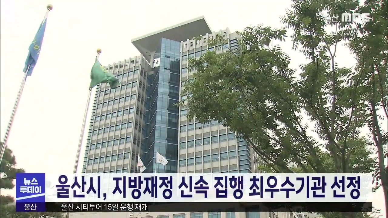 울산시는 2020년 상반기 지방재정 신속 집행 추진 실적 평가에서 최우수 기관으로 선정됐습니다. 시는 집행대상액 2조8천9억 원의 81.6%인 2조2천850억 원을 상반기에 집행했다고 밝혔습니다. 시는 행정안전부 기관 표창과 재정인센티브로 특별교부세 1억 원을 받습니다. //