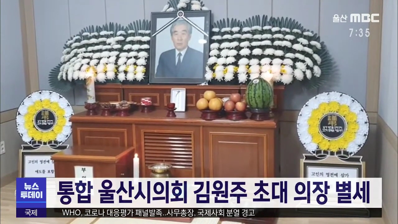 통합 울산시의회 초대 의장을 역임했던 김원주 씨가 향년 87세의 나이에 숙환으로 별세했습니다. 김 전 의장은 제 3대 울산광역시 승격 추진위원회 위원장을 맡아 광역시 승격에 힘을 쏟았습니다. 김 전 회장의 빈소는 동강병원 장례식장에 차려졌습니다.