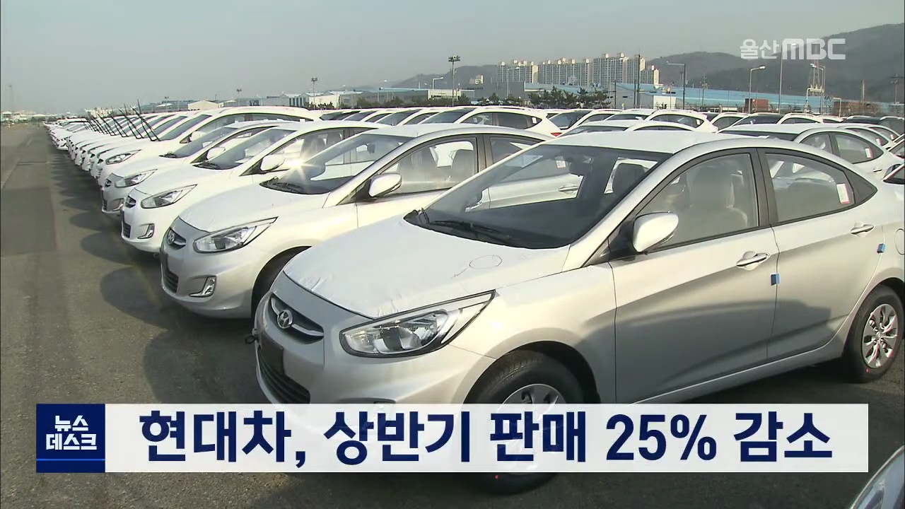 ◀ANC▶현대자동차의 올 상반기 판매가 1년전에 비해 25% 감소했습니다.코로나 19 장기화되면서 해외 판매가 크게 줄었기때문인데 하반기에도 나아질 가능성이 거의 없습니다.경제브리핑 최지호 ◀VCR▶ ◀END▶코로나19가 장기화되면서 현대자동차의 올 상반기 판매가 1년전에 비해 25% 감소한 것으로 나타났습니다.현...