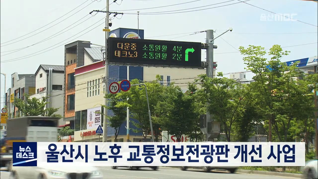 울산시가 낡은 교통정보 전광판을 개선하고 있습니다. 시는 사업비 4억 원을 들여 병목 지점이나 나들목 앞에 설치된 교통정보 전광판 8개를 교체했다고 밝혔습니다. 울산에서 운영되는 교통정보 전광판은 문자식 57대와 도형식 11대 등 모두 68대입니다. //