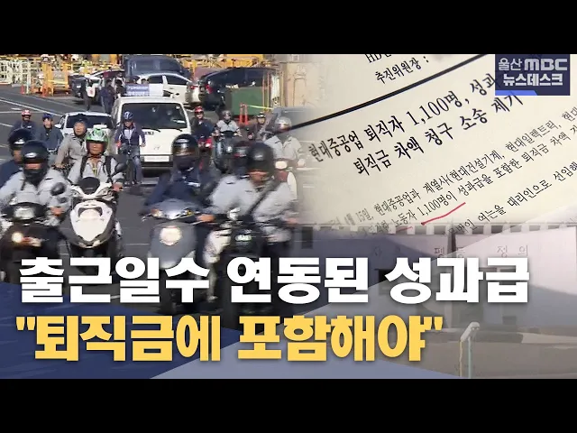 [앵커]HD현대중공업과 계열사 퇴직자들이 퇴직금 산정기준인 평균임금에 성과급이 포함돼야 한다고 주장하면서 차액 반환 소송을 제기했습니다. 출근 일수에 따라 성과급을 차등 지급받았기 때문에 근로의 대가라는 건데요. 울산의 다른 기업들도 유사한 소송을 준비 중인 것으로 알려졌습니다. 홍상순 기잡니다. [리포트]H...