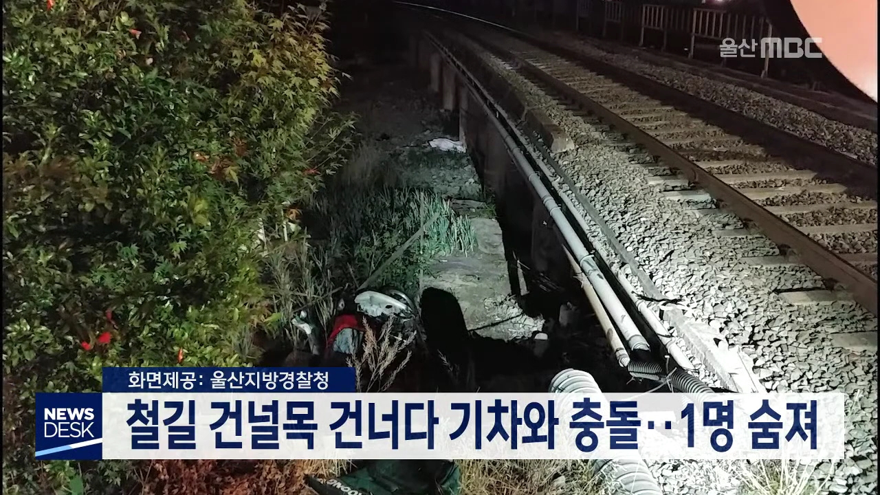 어제(6/21) 저녁 9시 43분쯤 북구 신천동의 동해선 철길 건널목에서 부산 방향으로 가던 무궁화호 열차와 오토바이가 부딪히는 사고가 발생했습니다. 이 사고로 오토바이를 운전하던 60대 A 씨가 현장에서 숨졌습니다. 경찰은 A 씨가 건널목을 지나다 사고가 난 것으로 보고 정확한 사고 경위를 조사하고 있습니다.