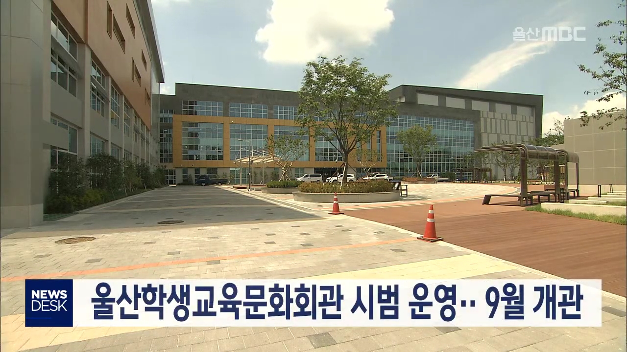 울산학생교육문화회관이 기획체험 전시를 시작으로 시범운영에 들어갑니다. 교육문화회관은 오는 23일부터 온라인 기획 전시 프로그램 '컬러 컬러 두'를 공개하고, 다음 달에는 댄스힙합, 뮤지컬, 연극 등 다양한 장르의 공연을 선보입니다. 교육문화회관은 지난 2월 준공됐지만, 코로나19 여파로 오는 9월 24일 정식 개관...