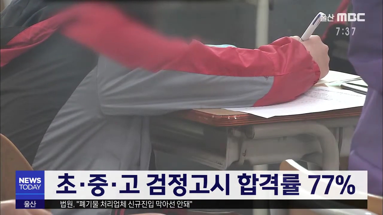 올해 초·중·고등학교 학력을 인정하는검정고시 평균 합격률은 77%로 집계됐습니다.초졸은 17명이 응시해 17명 전부,중졸은 120명 중 103명,고졸은 401명 중 296명이 합격했습니다.최고령 합격자는 74살 이모 씨로,고졸 시험에 합격했습니다.//