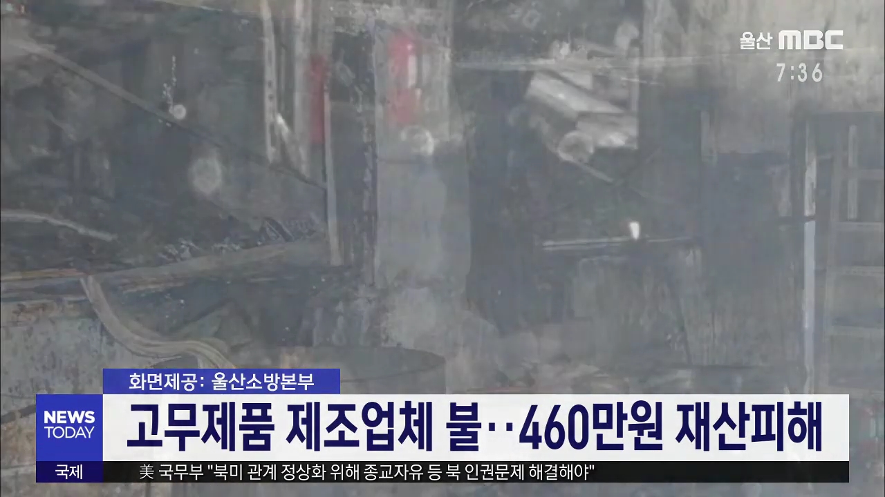 어제(6/10) 저녁 8시쯤 울주군 삼남면 교동리에 있는 고무제품 제조업체에서 불이나 내부시설 등을 태워 소방서 추산 460만원의 재산피해를 내고 출동한 소방대에 의해 30여분만에 진화됐습니다. 경찰과 소방당국은 고무를 건조하기 전 식기 등을 세척하는 과정에서 불이 났다는 관계자의 진술을 토대로 정확한 화재원인을 ...