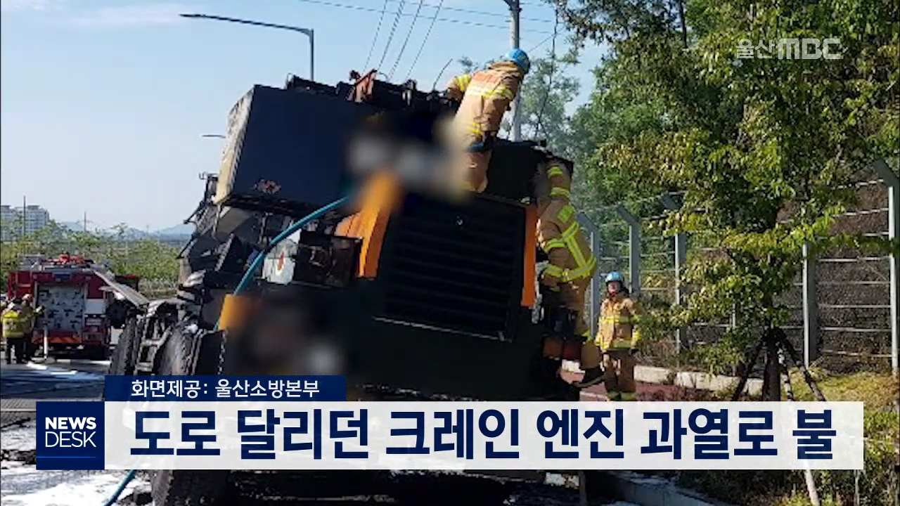 오늘(6/10) 오후 3시 25분쯤 울주군 청량읍 상남리의 한 도로를 달리던 크레인에서 불이 나 차량 1대를 태워 소방서 추산 3천360만 원의 재산 피해를 내고 25분 만에 꺼졌습니다. 소방당국은 엔진 과열로 누적된 기름 찌꺼기에서 최초 발화한 것으로 보고 화재 발생 경위를 조사하고 있습니다. //