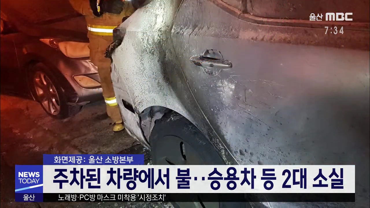 오늘(6/9) 새벽 1시 30분쯤 울산시 동구 방어동 주택가에 주차돼있던 승용차에서 불이난 뒤 바로 옆에 세워져있던 차량으로 불길이 번지면서 차량 2대를 태워 소방서 추산 300만원의 재산피해를 냈습니다. 경찰과 소방당국은 차량화재를 신고한 목격자의 진술 등을 토대로 정확한 화재원인을 조사하고 있습니다.