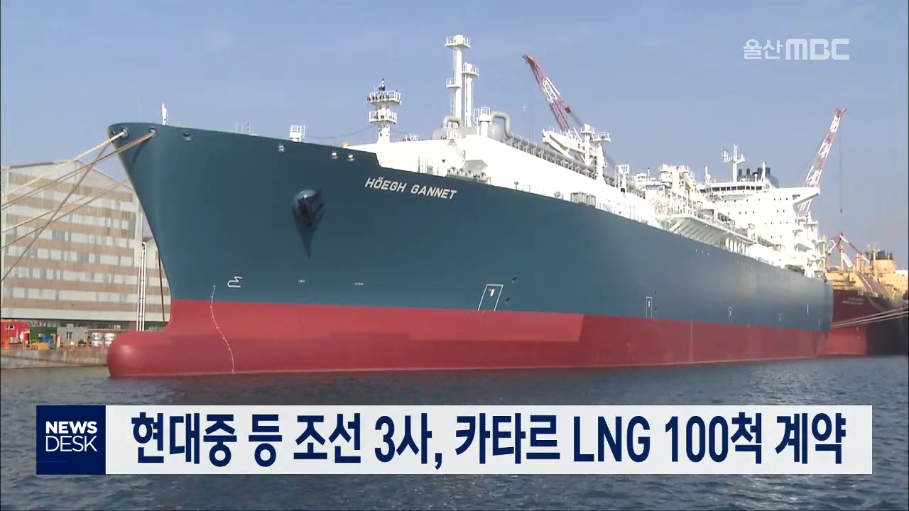 현대중공업 등 조선 3사가 카타르로부터 23조 6천억 원 규모 액화천연가스, LNG선 프로젝트를 따냈습니다. 카타르 국영석유사인 카타르 페트롤리엄은 홈페이지를 통해 현대중공업 등 조선 3사와 LNG선 관련 협약을 맺었다고 밝혔습니다. 이번 계약은 정식 계약을 맺기 전 LNG선 건조 공간을 확보하는 내용이며, 오는 2027년...