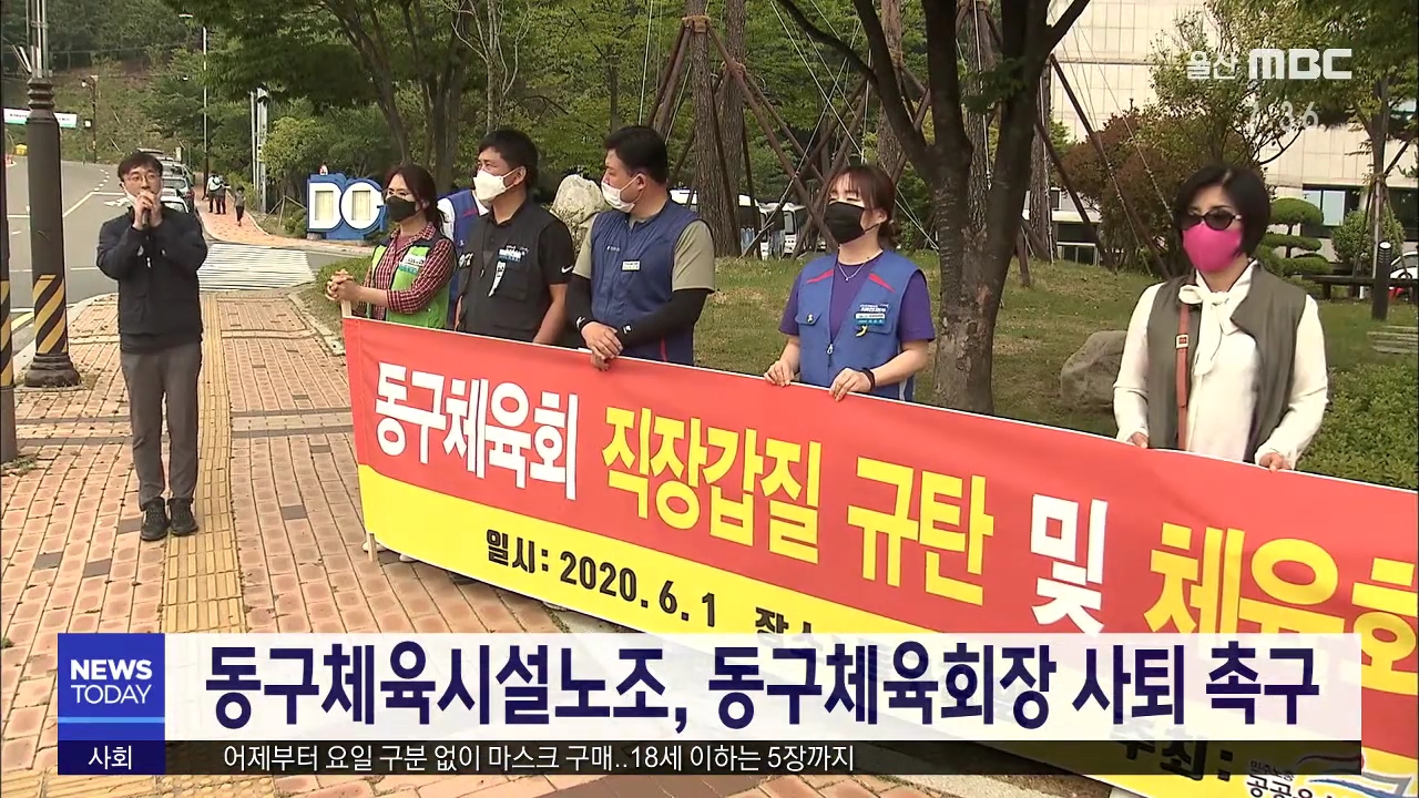 동구청체육시설 노조가 오늘(6/1) 동구청 앞에서 집회를 열고 동구체육회장의 직장갑질 사과와 체육회장 사퇴를 재차 요구했습니다. 노조는 체육회장이 상습적인 막말과 폭언을 일삼고 지난 1월부터 체육지도자 정근수당 전액 삭감, 사업장 전환배치 등을 일방적으로 추진했다고 밝혔습니다. 노조는 또 동구체육회 직장 내 ...