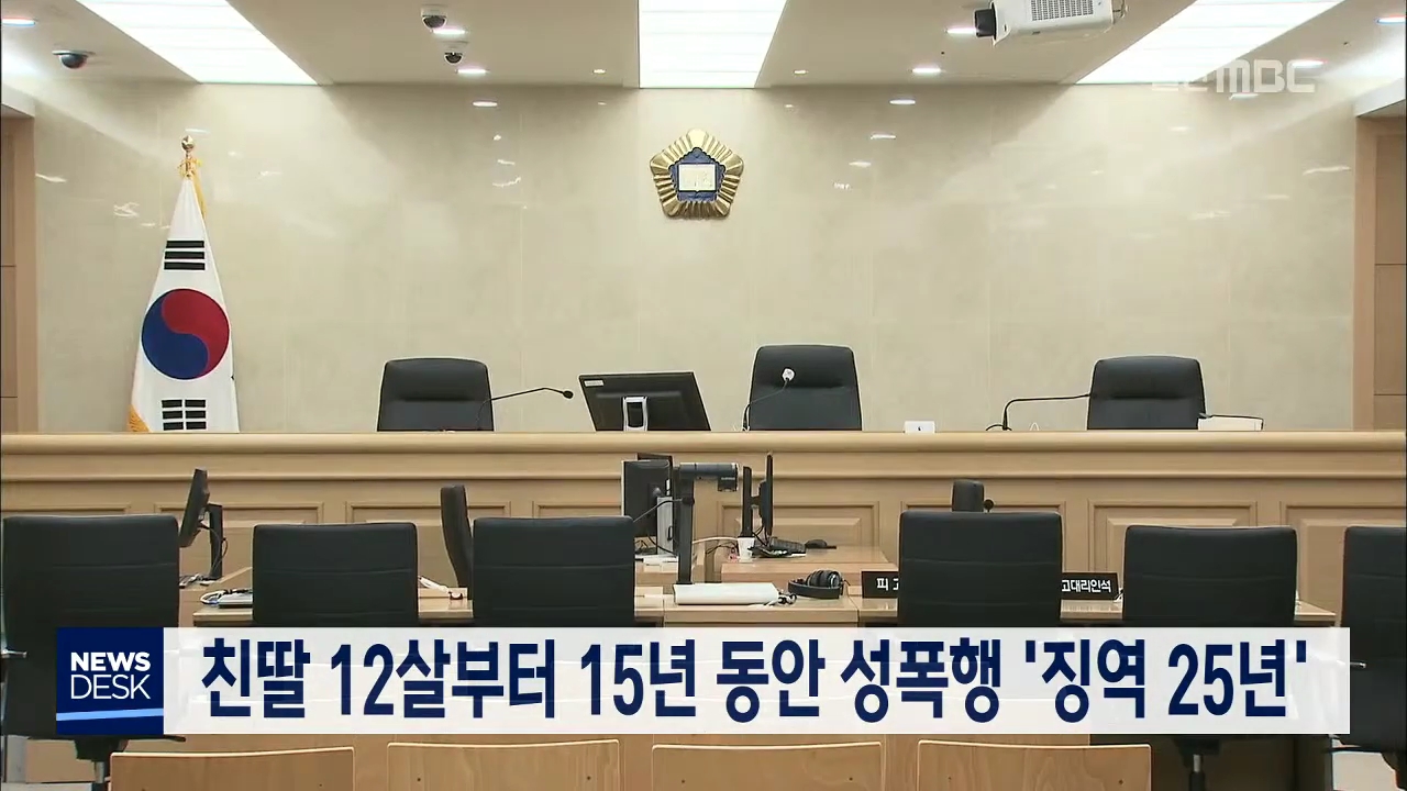 울산지법 형사11부 박주영 부장판사는 친딸을 15년 동안 성폭행하고 임신과 낙태를 반복하도록 한 혐의로 기소된 54살 A씨에게 징역 25년을 선고했습니다. A씨는 지난 2004년 집에서 아내를 폭행한 뒤 겁에 질린 12살 딸을 성폭행한 것을 시작으로 15년 동안 매주 1차례 이상 성폭행하고, 4차례 임신중절 수술을 받도록 한 ...
