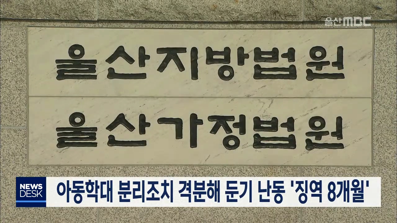 울산지법 형사9단독 문기선 판사는 특수공무집행방해 혐의로 기소된 51살 A씨에게 징역 8개월을 선고했습니다. A씨는 지난해 10월 아동학대 신고를 받고 출동한 경찰과 공무원이 자신의 딸을 데리고 가 아동보호기관에 맡기자 다음 날 둔기를 들고 구청에서 난동을 피운 혐의로 기소됐습니다.//