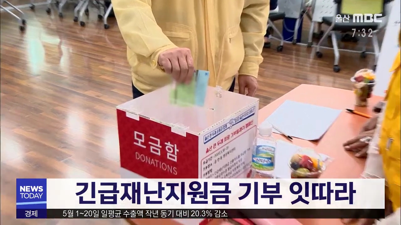 울산에서도 정부가 지원하는 긴급재난지원금을 기부하는 시민들이 잇따르고 있습니다. 대한적십자사 울산지사는 오늘(5/21) 오전 기준, 80여 명이 참여해 기부금 1천97만원이 모였다고 밝혔습니다. 구·군별로는 울주군이 286만 원으로 가장 많고 남구 260만 원, 중구 140만 원 등으로 뒤를 이었습니다. 기부금은 코로나19로...