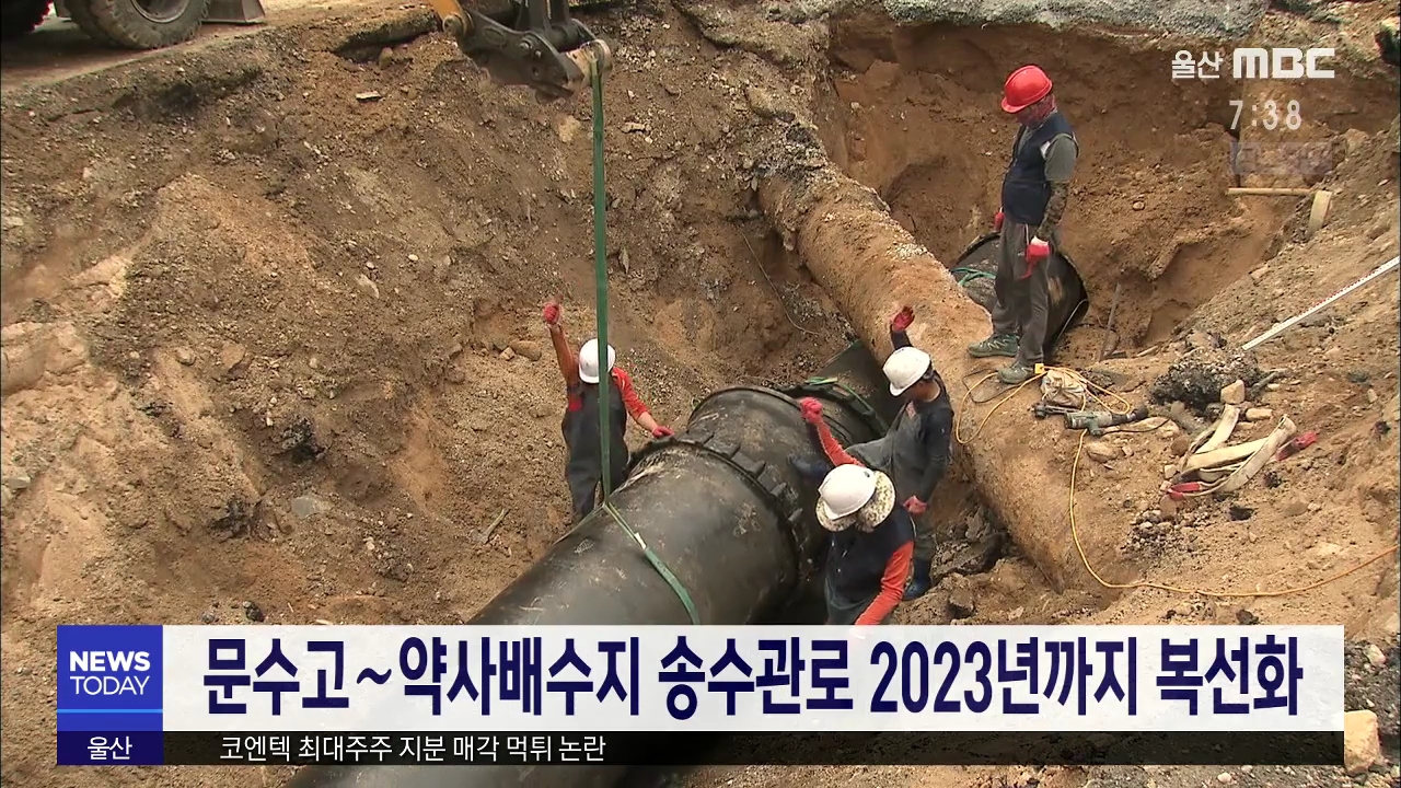 울산시상수도사업본부는 문수고등학교에서 약사배수지 입구까지 7.8㎞ 구간 송수관로를 복선화하는 사업에 들어갑니다. 이번 사업은 그동안 하나의 송수관로로 물공급을 하다 문제가 생길경우 단수가 되는 문제점을 보완하기 위해 실행하며 다음달 공사에 들어가 2023년 1월 준공될 예정입니다.