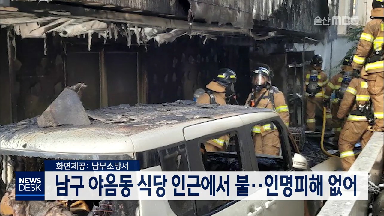 오늘(5/11) 오후 3시 50분쯤 남구 야음동의 한 식당 옆에서 불이 나 차량 한 대와 건물 외벽 등을 태워 소방서 추산 1천9백만 원의 재산 피해를 내고 10분 만에 꺼졌습니다. 소방당국 건물 외벽 공터에 쌓인 쓰레기에서 불이 발생한 것으로 보고 주변 cctv 등을 토대로 화재 발생 경위를 조사하고 있습니다. //