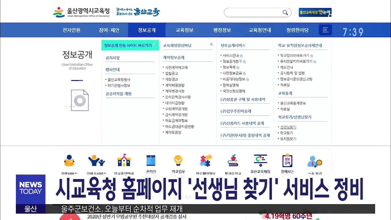 울산시교육청이 오는 15일 스승의 날을 앞두고 홈페이지 내 '선생님 찾기' 서비스를 새로 정비합니다. 시교육청은 스승과 제자 간 인연이 이어질 수 있도록 개인정보 이용에 동의한 교원 정보를 업데이트해 정확한 홈페이지 검색을 지원할 방침이라고 설명했습니다./