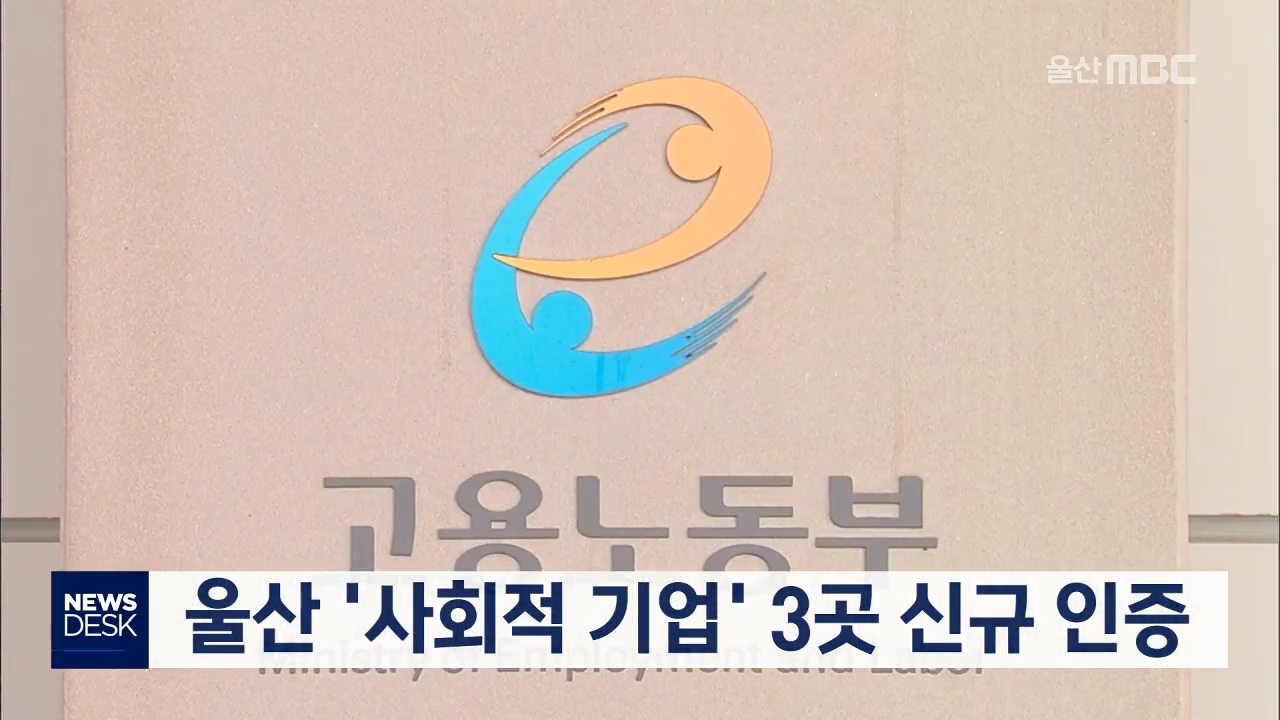 울산지역의 기업체 3곳이 고용노동부의 사회적 기업으로 신규 인증됐습니다. 고용노동부는 올해 2번째 사회적 기업 육성 전문위원회를 열고 울산지역의 의류제작 훈련업체 '미애'와 농수산물 도소매업체 '삶터', 판촉물 제작업체 '인기기프트'를 사회적 기업으로 인증했다고 밝혔습니다. 사회적 기업은 취약계층 보호와 일...