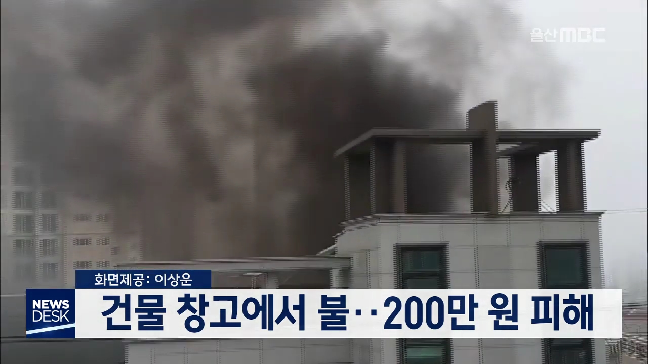 오늘(5/2) 오후 1시쯤 동구 방어동의 한 건물 창고에서 불이 나 창고 내외부와 집기 등을 태워 소방서 추산 200만 원의 재산 피해를 내고 20분 만에 꺼졌습니다. 소방당국은 정확한 발화 지점을 조사하는 한편, 건조한 날씨가 이어지는 요즘 각종 화재사고에 각별한 주의를 당부했습니다.//