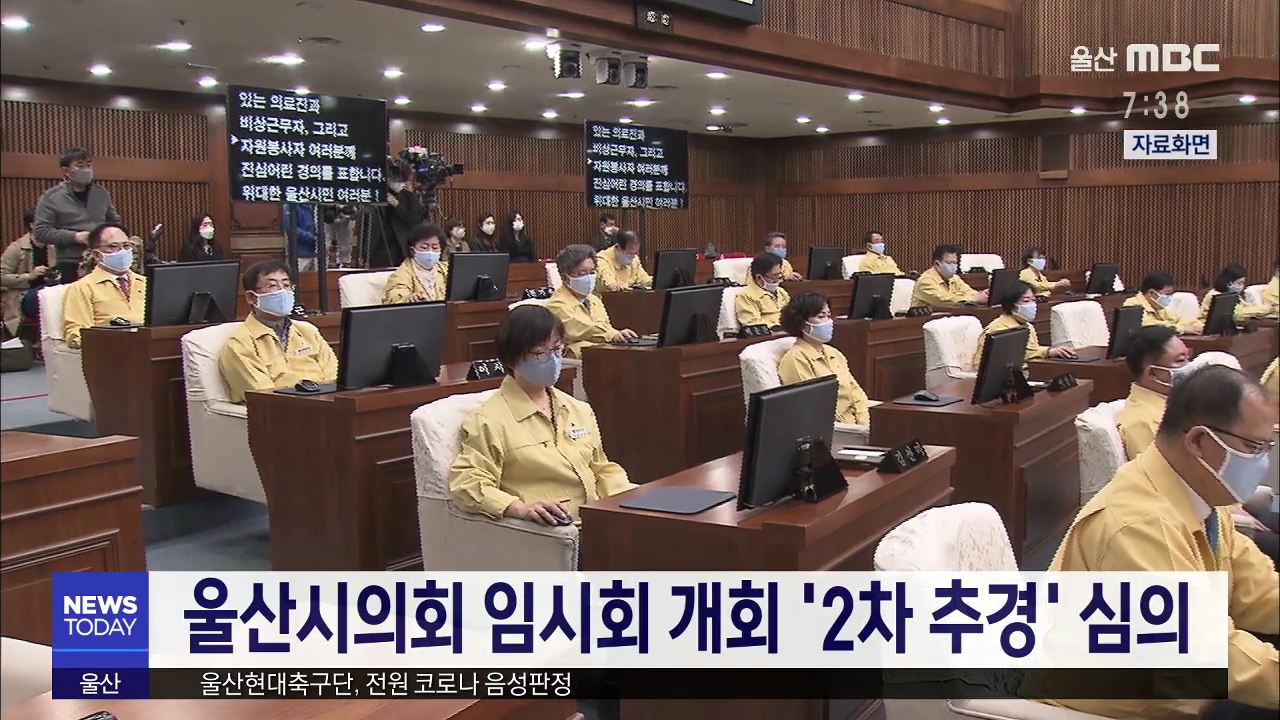 울산시의회는 오늘(4/29)부터 2주일 동안 임시회 본회의를 열고 2차 추가경정예산과 조례 10여 건을 심의·의결합니다. 울산시는 코로나19 대응과 경기 회복 사업에 천197억 원 등 천982억원의 2차 추경안을 시의회에 제출했습니다. 시의회는 울산시교육청이 학생 1인당 10만원씩 지원하는 교육재난지원금 150억 원도 이번 ...