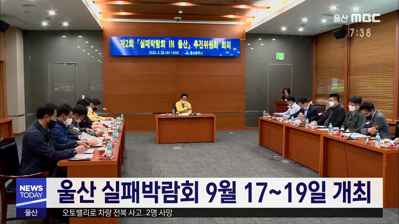 울산에서 개최 예정인 실패박람회 추진위원회 회의가 오늘(4/29) 시청에서 열려 추진 방안을 논의했습니다. 행정안전부와 울산시가 공동으로 개최하는 2020 실패박람회는 오는 9월 17일부터 19일까지 사흘 동안 태화강 국가정원에서 열릴 예정입니다. 실패박람회는 실패 사례를 공유하고 극복 방안을 찾자는 취지로 기획돼 ...
