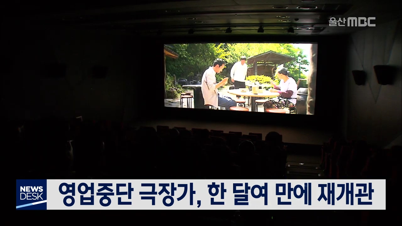 코로나19 사태 여파로 일시적으로 문을 닫은 극장들이 속속 영업을 재개하고 있습니다. 메가박스는 코로나19로 4월 한 달 동안 영업을 중단한 울산점 등 11개 지점 영업을 다음 달 1일부터 재개한다고 밝혔습니다. 지난 2월 말부터 임시휴관에 들어갔던 동구 현대예술관 영화관도 지난 24일부터 운영을 재개했습니다.//