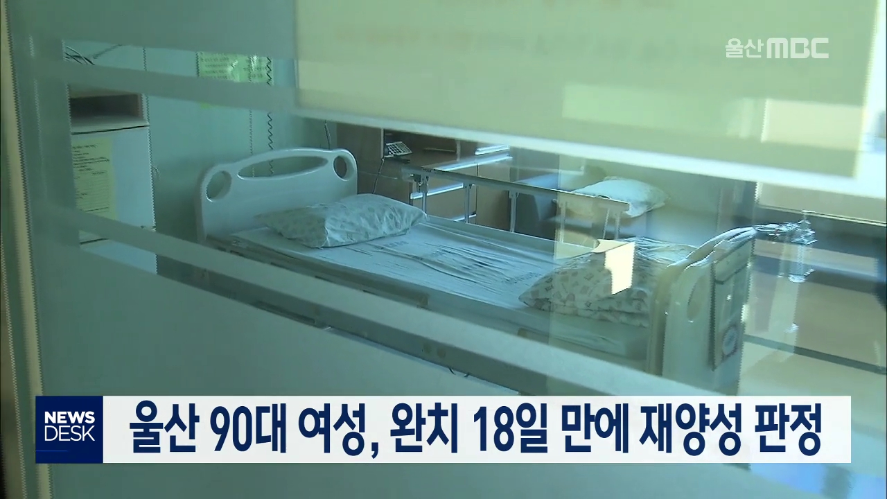 울산에서 코로나19에 감염됐다 완치된 90대 여성이 18일만에 다시 양성 판정을 받았습니다. 울산시에 따르면 지난 8일 코로나19 완치를 확인받고 퇴원했던 92살 여성 A씨가 오늘(4/26) 재양성 판정을 받아 울산대병원에 입원했습니다. A씨는 지난 8일 이후 울주군에 있는 딸의 집에서 거주해 온 것으로 확인됐습니다. 울산...