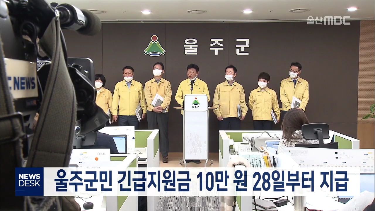 울주군이 코로나19 사태에 따른 군민 1인당 10만 원의 긴급 지원금을 오는 28일부터 지급할 계획입니다. 울주군은 오는 28일과 29일 마을별로 직접 나눠줄 계획이며 이때 못 받은 주민은 30일부터 주소지 행정복지센터에서 받을 수 있습니다 지원금은 선불카드로 지급하며 울주군의 모든 BC카드 가맹점에서 7월 31일까지 사...