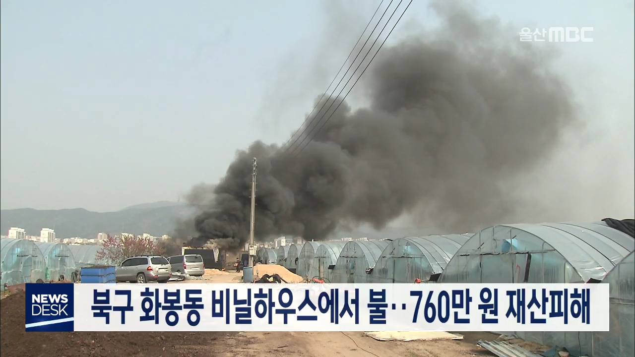 오늘 오후 3시쯤 북구 화봉동의 비닐하우스에서 불이 나 건조기와 저장창고 등을 태워 소방서 추산 760만 원의 재산피해를 내고 20분만에 꺼졌습니다. 소방당국은 배전반에서 불이 시작된 것으로 보고 정확한 화재원인을 조사하고 있습니다.//