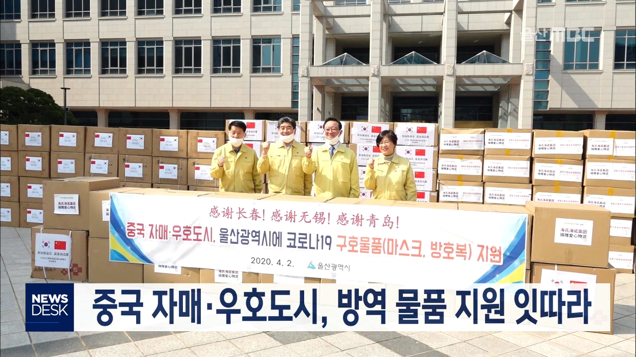 울산시로부터 방역 물품을 지원받았던 중국 자매·우호도시들이 은혜를 갚고 있습니다. 울산시의 자매도시인 우시시는 덴탈 마스크 2만 개와 방호복 500벌을, 창춘시는 덴탈 마스크 1만 개와 방호복 990벌을, 우호도시인 칭다오시는 마스크 2만 개와 방호복 2천800벌을 보내왔습니다. 앞서 울산시는 지난 2월 7일 코로나19 ...
