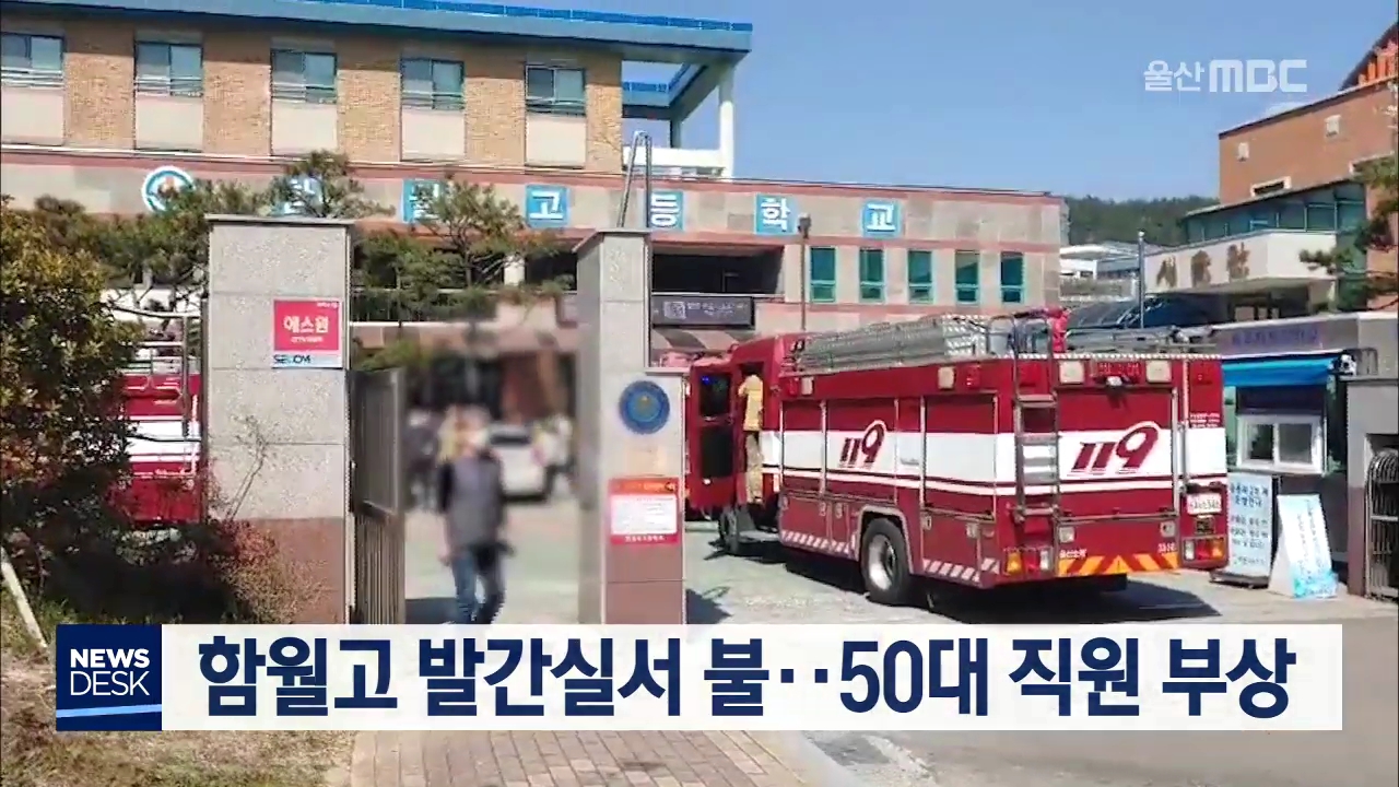 오늘(3/23) 오후 1시 13분쯤 중구 함월고 본관 2층 발간실에서 불이 나 인쇄도구 등을 태워 소방서 추산 1천3백만 원 상당의 재산피해를 내고 15분 만에 꺼졌습니다. 이 불로 50대 직원 1명이 기도에 화상을 입어 병원으로 이송됐습니다. 경찰과 소방당국은 출근한 교직원 등을 상대로 정확한 화재 경위를 조사하고 있습니...
