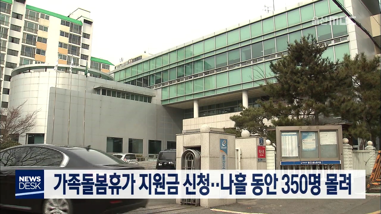 코로나19 확산으로 휴원·휴교가 길어지면서 울산지역에도 가족돌봄휴가 지원금 신청이 잇따르고 있습니다. 고용노동부 울산지청에 따르면 지난 16일부터 나흘 동안 가족돌봄휴가를 낸 뒤 비용 지급을 신청한 사람은 모두 350명입니다. 코로나19 확산에 따른 한시적 대책인 가족돌봄휴가 비용은 만 8세 이하 자녀나 만 18세 ...