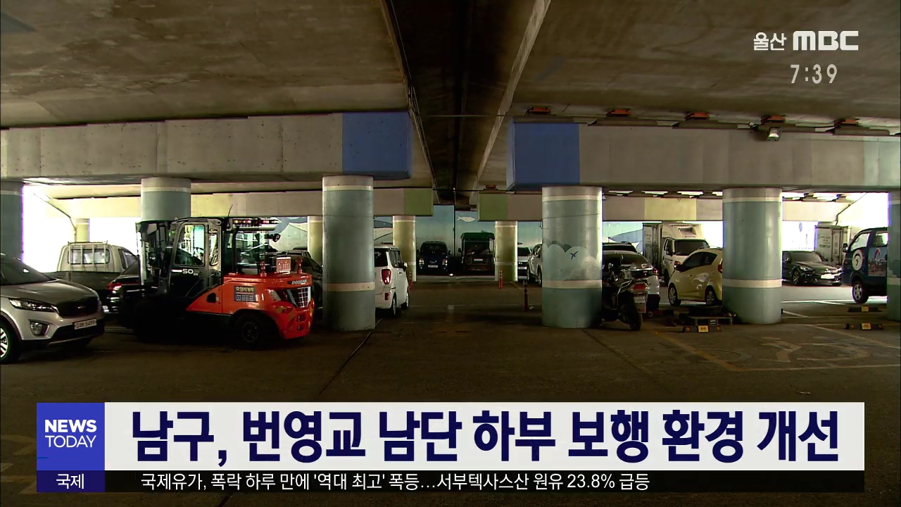 남구가 번영교 남단 하부 공영주차장을 보행자를 위한 공간으로 재정비합니다. 이곳은 중구와 남구를 연계하는 주요 거점이지만 어둡고 낙후돼 주민들의 개선 건의가 꾸준히 있었습니다. 남구청은 경관 조명 등을 설치해 주민들이 야간에 안심하고 다닐 수 있도록 할 것이라고 밝혔습니다. //