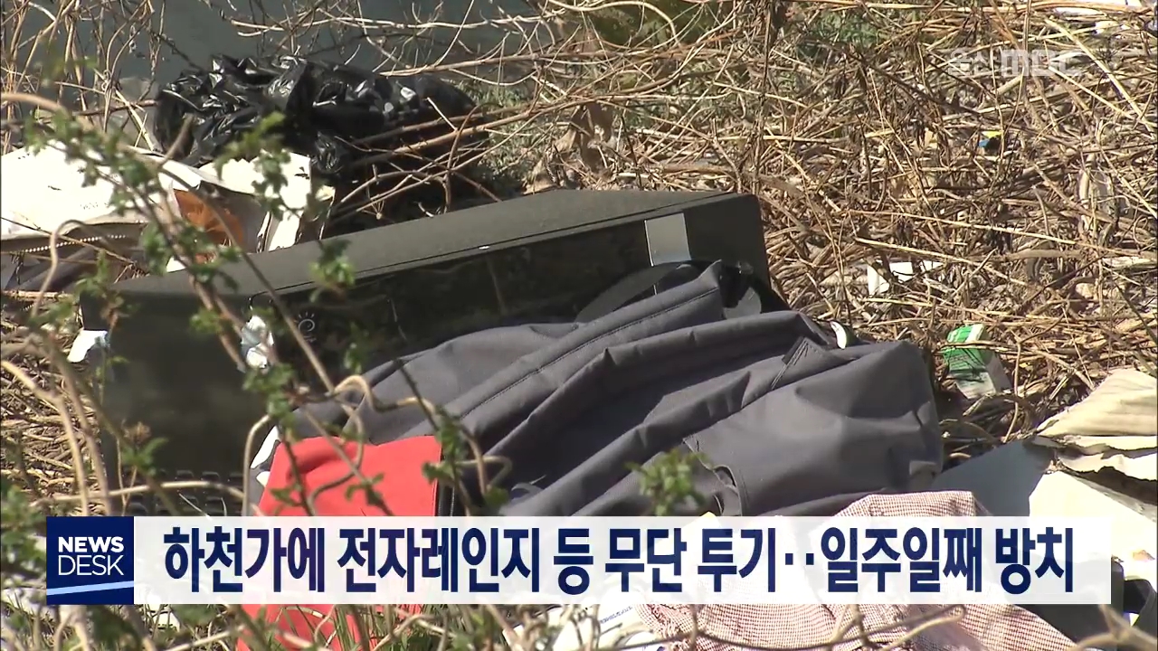 남구 여천 배수펌프장 인근 하천가에 전자레인지 등 가전제품을 포함해 이불과 의류 등 각종 쓰레기가 일주일째 방치돼 있어 인근 주민이 불편을 토로했습니다. 남구청은 현장을 확인하고 인력을 투입해 정비 작업을 했지만, 주변에 CCTV가 없어 무단 투기한 사람을 찾지는 못했다고 밝혔습니다. //
