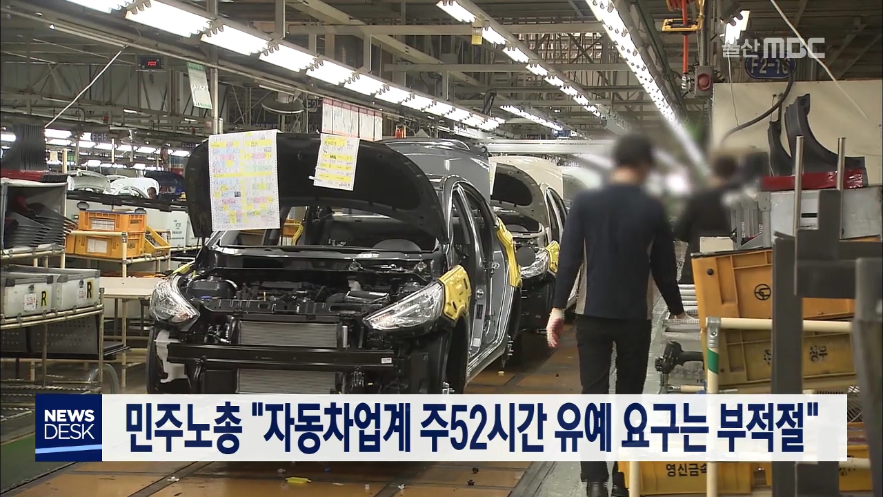 울산시가 코로나19 유행을 이유로 자동차업계 등에 대한 주52시간 근무제 유예를 정부에 건의하자 노동계가 반대하고 나섰습니다. 민주노총 울산본부는 현재 자동차업계가 일부 인기 차종을 제외하고는 대부분 소비 위축으로 생산량이 줄어든 상황이라 주52시간 근무제를 유예할 이유가 없다고 주장했습니다. 또 생산량이 ...