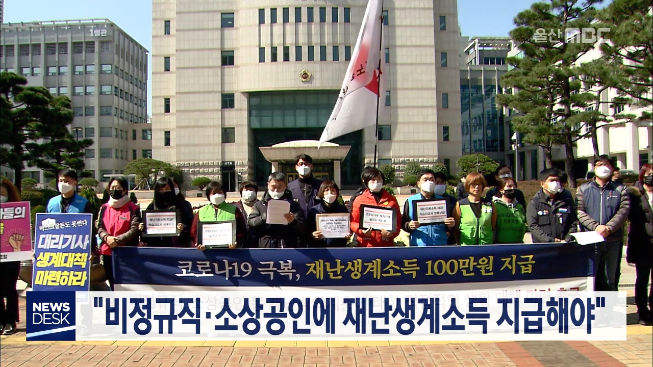 코로나19 유행으로 생존 위기에 놓인 비정규직 근로자와 소상공인에게 재난생계소득을 지급해야 한다는 주장이 제기됐습니다. 민주노총 울산본부는 오늘(3/12) 기자회견을 열고, 코로나19 유행으로 인한 경기 침체의 피해가 비정규직과 소상공인 등 경제적 약자에게 집중되고 있다며, 울산시가 최소한의 생계 유지를 위한 ...