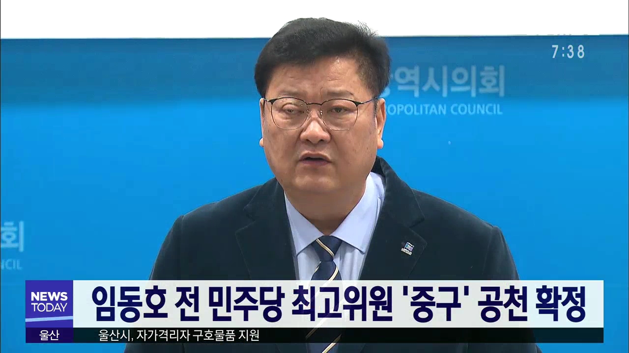 임동호 더불어민주당 전 최고위원이 4.15 총선 중구 후보로 확정됐습니다. 임 전 위원은 지난 7일부터 사흘 동안 권리당원 50%와 여론조사 50% 배점으로 실시된 경선 투표에서 김광식 전 근로복지공단 상임감사를 꺾고 본선에 올랐습니다. 이로써 울산지역 6개 선거구 공천을 마무리 지은 민주당은 본격적인 선거 전략 마련...