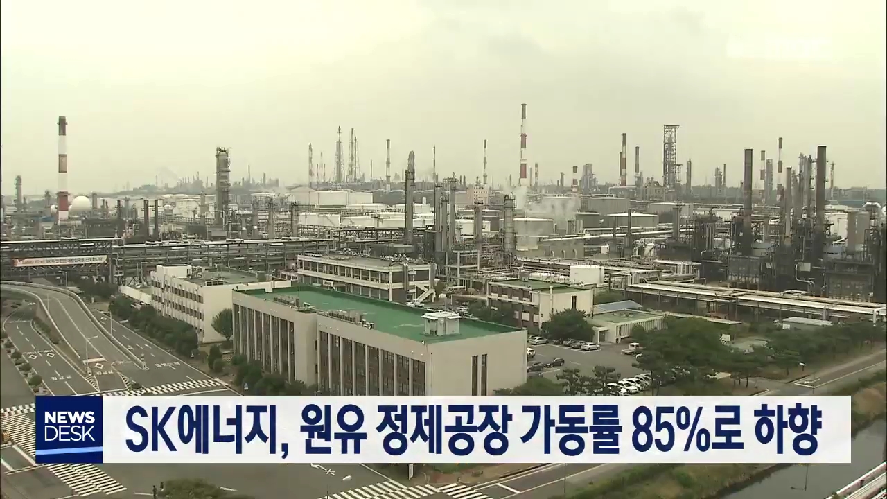 코로나19 여파로 석유제품 소비가 감소하자 SK에너지가 원유 정제공장 가동률을 85%로 낮추기로 했습니다. SK에너지는 울산 정제공장 가동률을 이달 안에85%까지 순차적으로 낮출 예정입니다. SK에너지가 제품 수요 부족으로 정제공장 가동률을 80%대로 낮춘 것은 2009년 글로벌 금융위기 이후 처음입니다.//