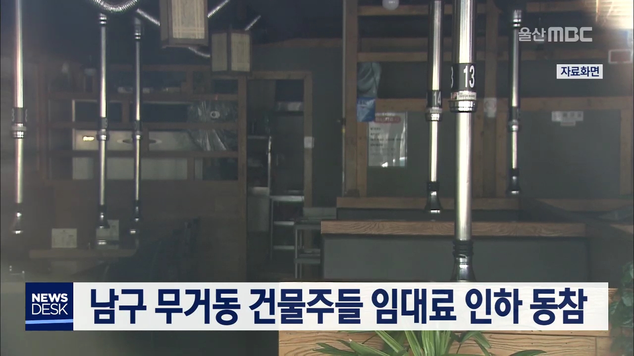 남구 무거동 일대 7개 건물 임대인들이 '착한 임대인 운동'에 동참해 코로나19 위기 극복에 힘을 보태기로 했습니다. 해당 임대인들은 월 임대료의 30%에 해당하는 70-80만 원을 인하하기로 했습니다. 무거동 일대는 상권이 밀집해 있어 평소 사람들로 붐비는 곳으로 코로나19 확산으로 직접적인 타격을 받고 있습니다. //