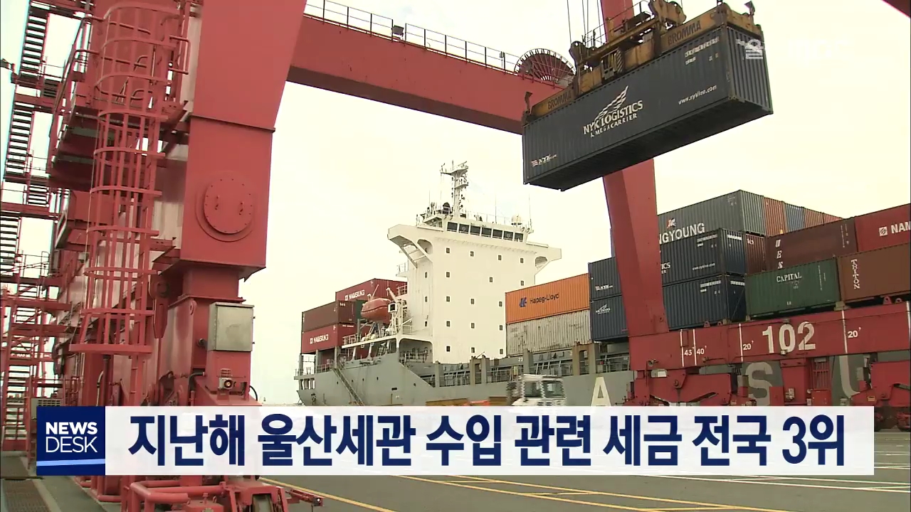 지난해 울산세관의 수입 관련 세금액이 전국 세관 가운데 세 번째로 많았던 것으로 나타났습니다. 울산세관은 지난해 울산지역 기업들의 수입액은 541억 달러로 이에 따른 관세와 부가세 등 수입 관련 세금이 6조 9천억 원이라고 밝혔습니다. 우리나라에는 모두 34개의 세관이 있으며 울산세관은 인천과 부산에 이어 3위의 ...