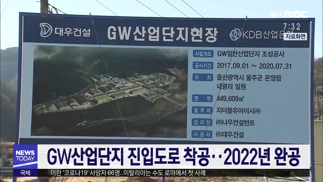 울주군 온양읍 GW산업단지 진입도로 개설공사가 2022년 완공을 목표로 시작됐습니다. 이 도로는 울주군도 33호선 구간 가운데 울주군 온양읍 내광리와 경남 양산시 용당동까지 2.5km 구간입니다. 이 구간은 심한 굴곡부와 경사 20% 이상의 불합리한 기하 구조로, 그동안 인근 공장 물동량 수송과 주민 통행에 불편이 컸습니...