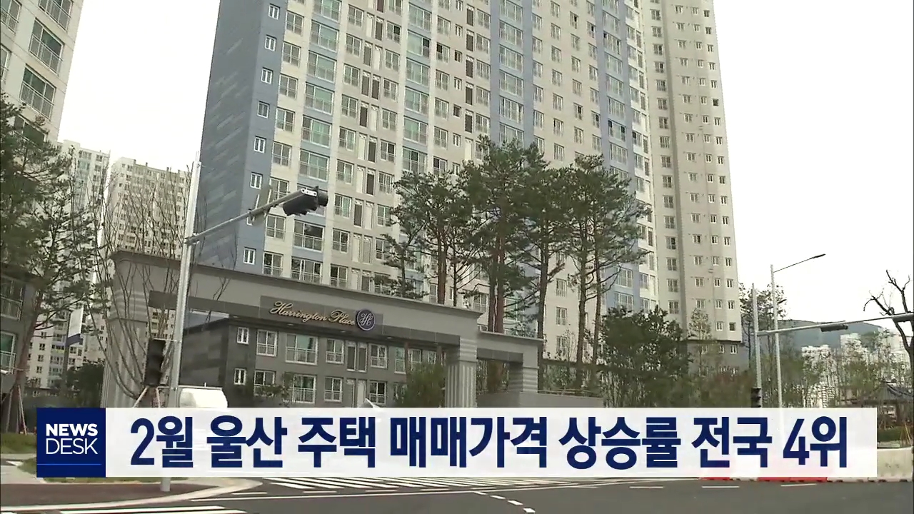 2월 월간 울산 지역 주택 매매가격 상승률은 0.43%로 전국 17개 시도 가운데 세종과 대전, 경기에 이어 4번째로 높았습니다. 한국감정원의 2월 전국 주택가격 동향을 보면 울산은 북구와 남구가 각각 0.65%, 0.62% 상승하며, 전달 0.33%에 비해 상승폭이 확대됐습니다. 전세가격은 북구와 동구가 각각 1.08%, 0.52% 오르며 ...