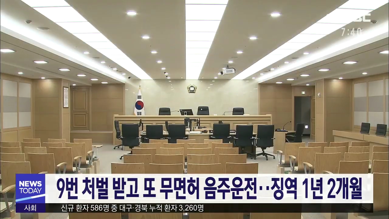 9번 처벌 받고 또 무면허 음주운전…징역 1년 2개월